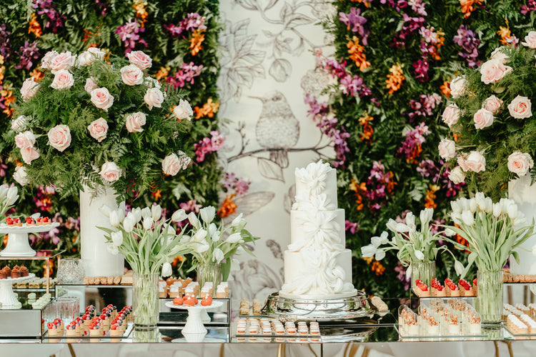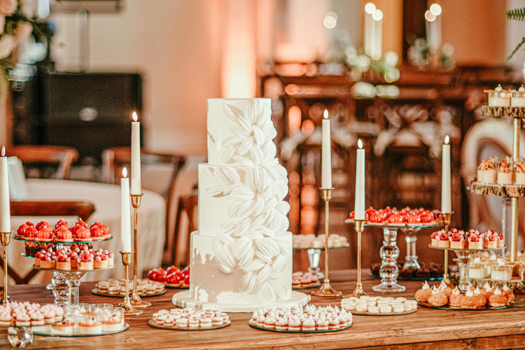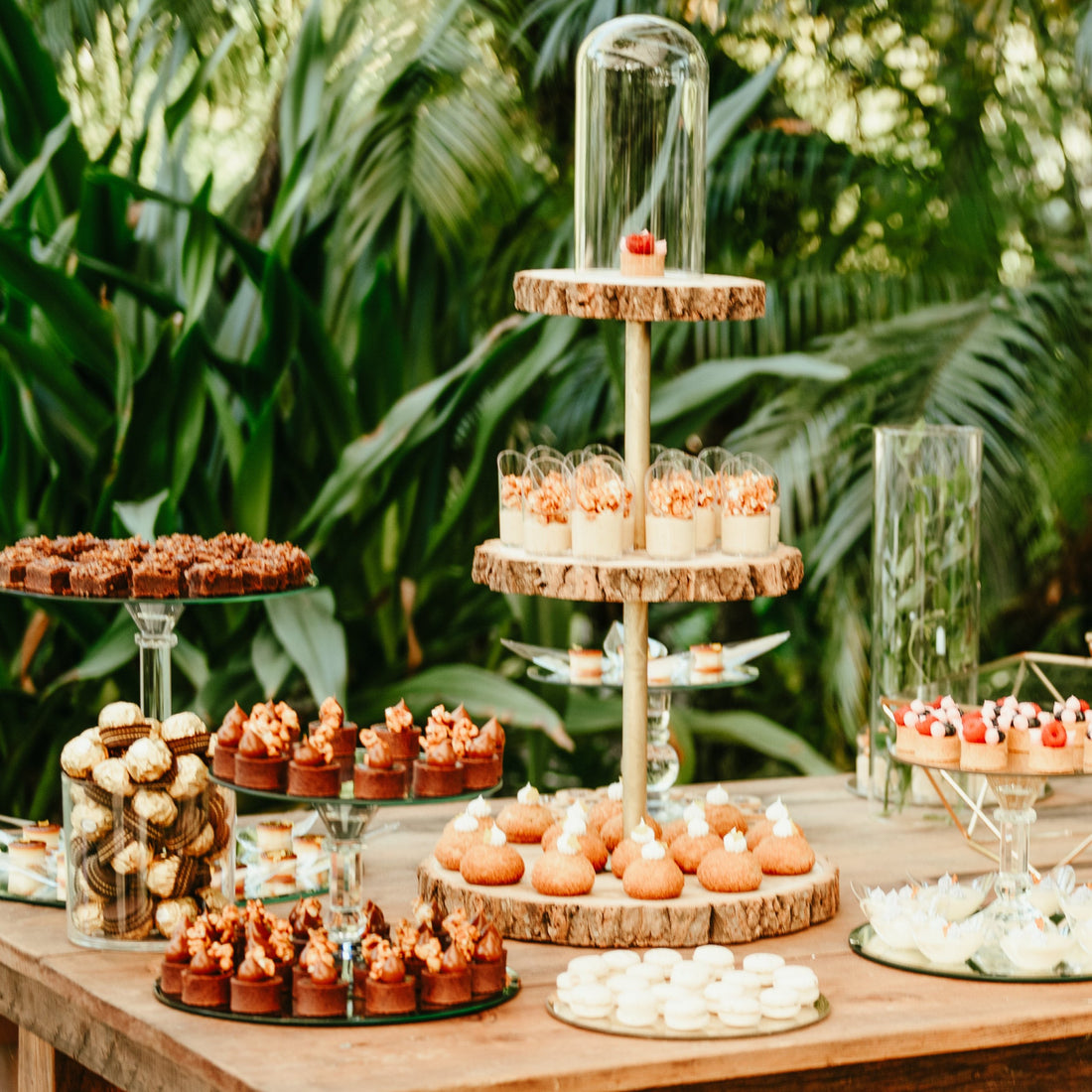 - Dessert curation and styling: expertly arranged by color, contrast, and shape to create an inviting experience.