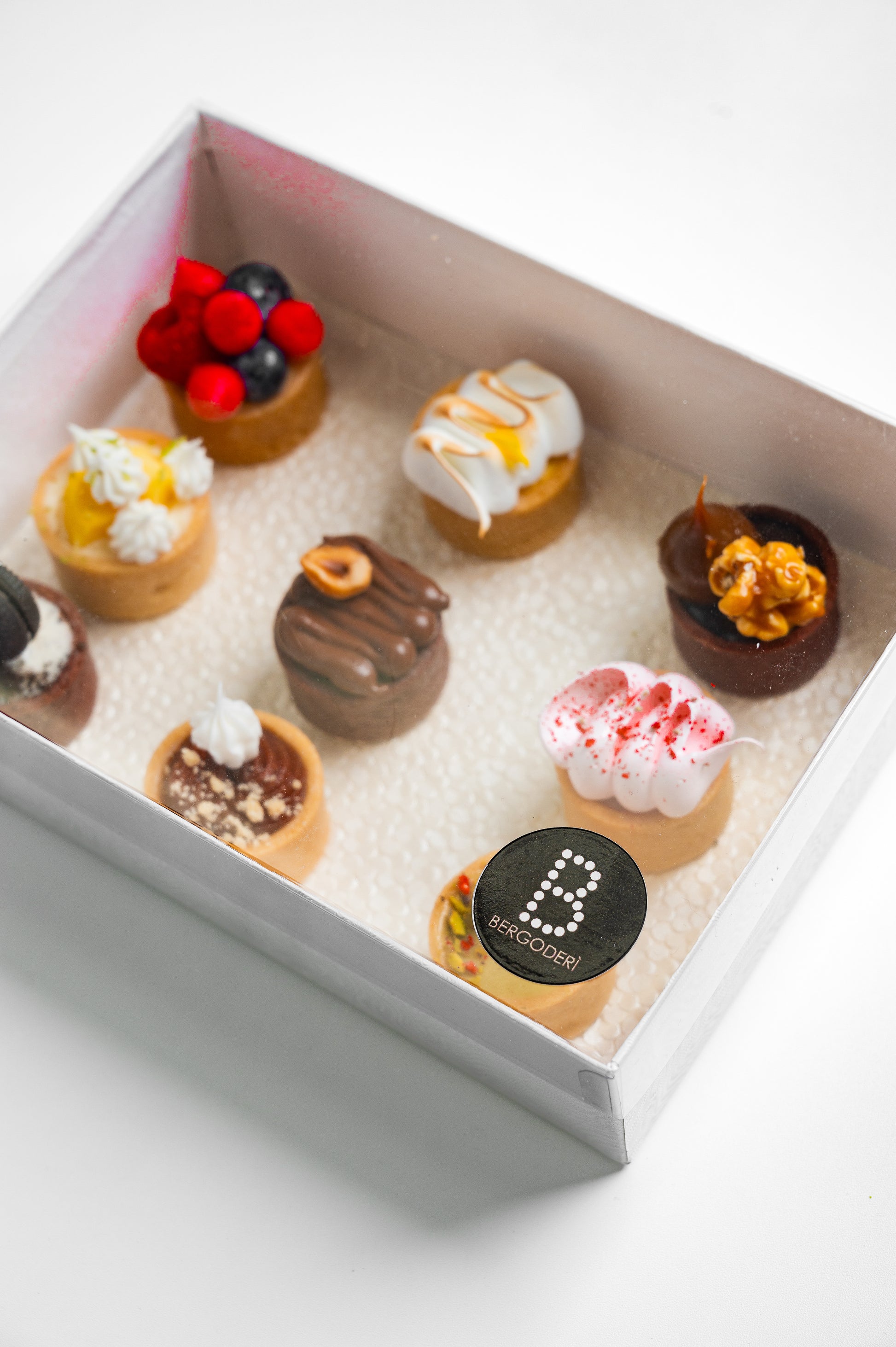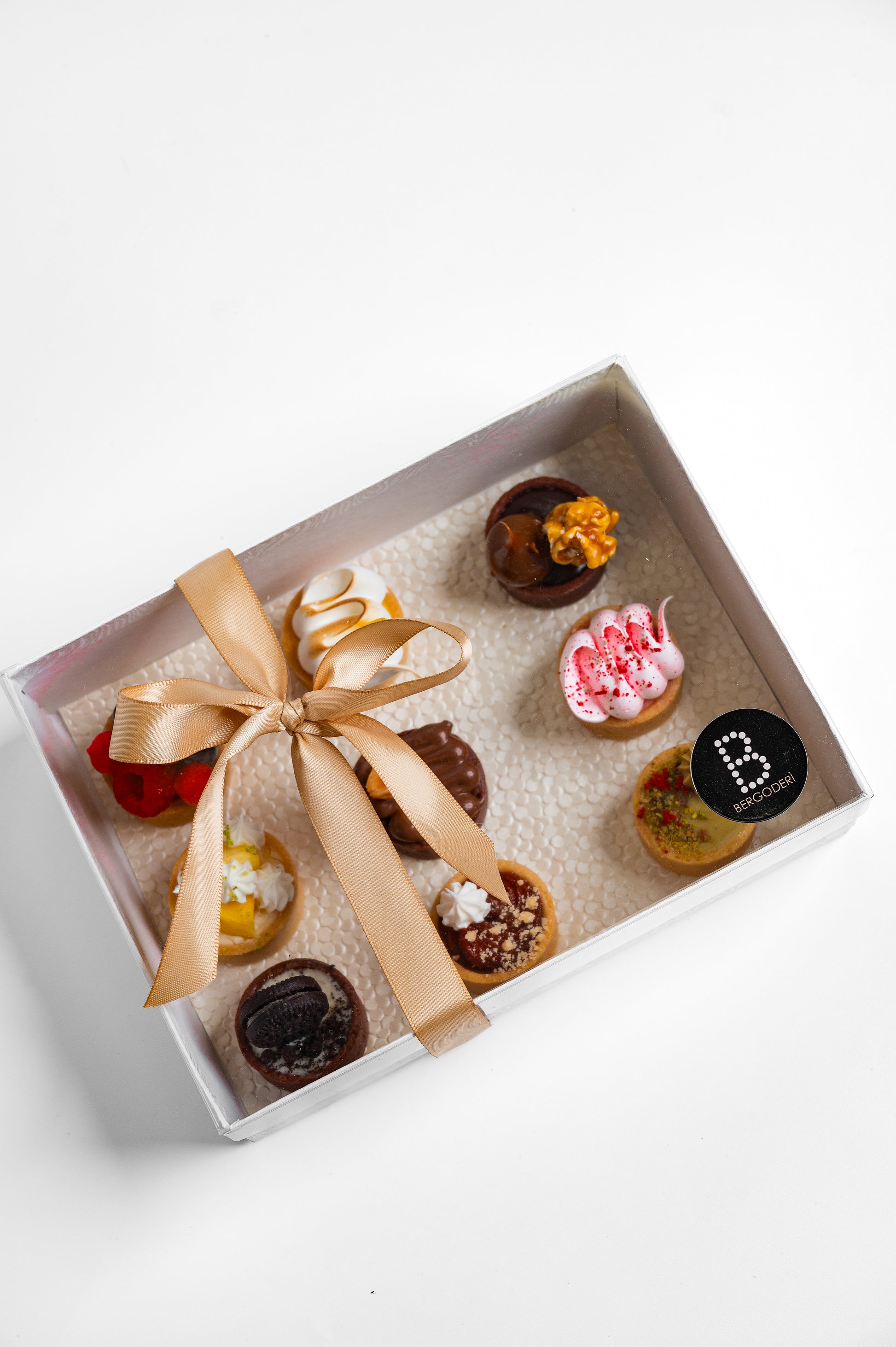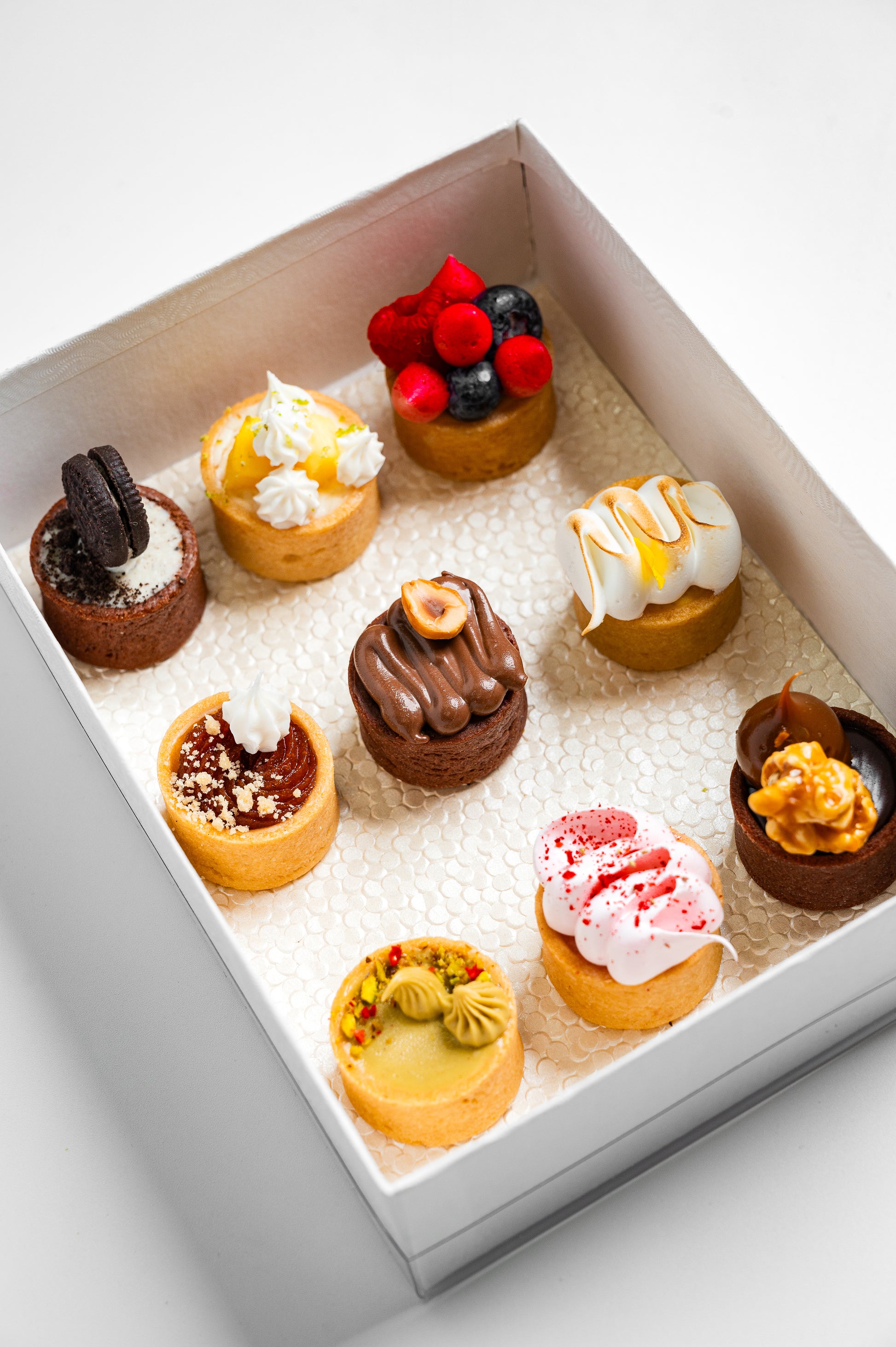 Indulge in a variety of luxurious and delicious mini tarts with our Assorted Mini Tarts Box! Perfect for any occasion. Treat yourself or someone special to this delightful selection and experience a truly unique gourmet delight!